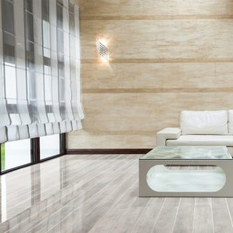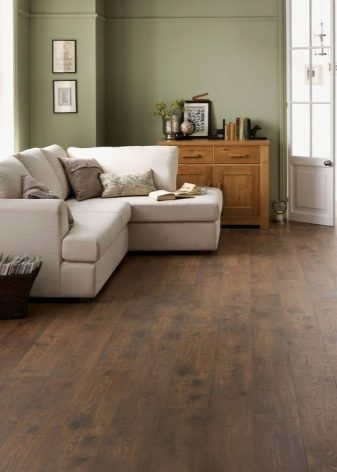 Laminat-neutrale Farben werden so hergestellt, dass sie wie Massivholz aussehen. Diese Option eignet sich für alle Stylisten und bleibt jederzeit modisch. Es wird aktiv in Wohnungen, Häusern und anderen Objekten verwendet.Mit klassischen Schichtpaneelen können Sie den Stil des Raumes in Zukunft ändern, ohne die Beschichtung zu demontieren. Diese Option ist in der Pflege unprätentiös.
