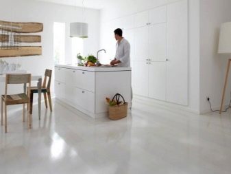 - Designer bemerken, dass die Verwendung eines solchen Bodens den Effekt unnatürlicher Beleuchtung erzeugen kann. Um diesen Nachteil zu umgehen, versuchen die Hersteller, das Material natürlicher zu machen und natürlicher zu gestalten.