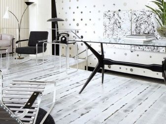 Designer verwenden verschiedene Techniken, um diese Option des Materials in seiner ganzen Pracht darzustellen. Zunächst müssen Sie die entsprechende Farbe auswählen. Es kann weiß, fast weiß, Laminat oder ein gesättigter Schatten sein: Grau, Beige und ihre Schattierungen.