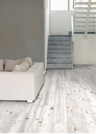 - Laminat in hellen Farben ist eine stilvolle und modische Lösung. Die Beschichtung verleiht dem Interieur einen Hauch von Raffinesse und Chic.