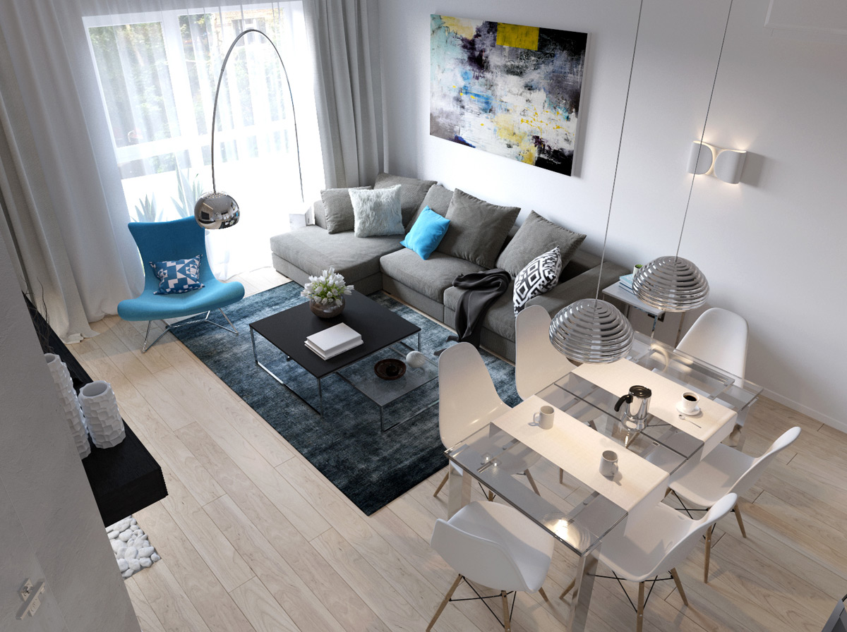Denken Sie daran, dass diese Schattierungen das Raumvolumen reduzieren.Wenn Sie es übertreiben, wird statt eines raffinierten Dekors eine düstere und bedrückende Situation entstehen.