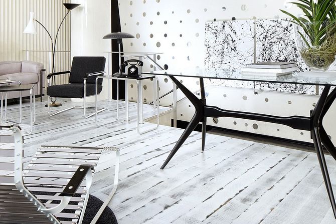 In Kombination mit dieser Version des Fußbodens werden tolle Pastelltöne aussehen: Koralle, Flieder, Minze, Blau, Aprikose und ihre Schattierungen.