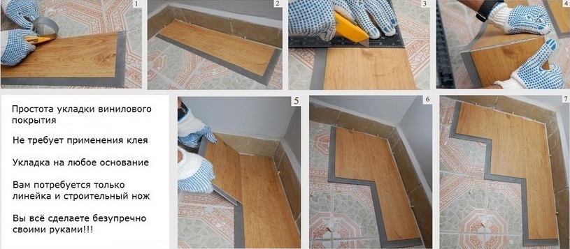 Es gibt verschiedene Möglichkeiten, PVC-Fliesen zu verlegen. Alles hängt von der Art des Bodens ab: