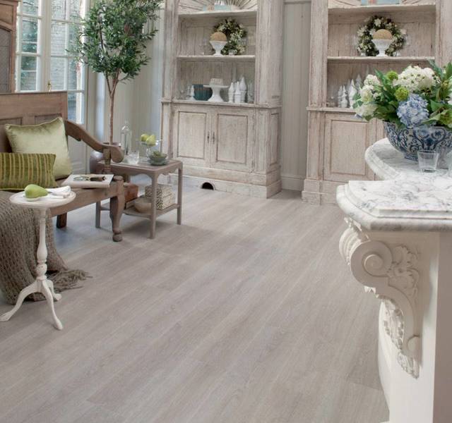 - Quartzvinyl Das Laminat enthält Feinsteinzeugpartikel. Es ist auch eine schwere Pflicht. Der Herstellungsprozess verwendet Nano-Silver-Technologie. Es enthält Silberionen, die, wie Sie wissen, desinfizierende und antibakterielle Eigenschaften haben. Es ist ein solches Laminat, das in den Hallen und Operationssälen empfohlen wird.