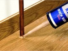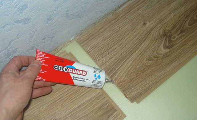 Es ist auch möglich, Gel für die Gelenke zu verwenden. Natürlich gibt es sogar ein wachsimprägniertes Produkt auf dem Markt, aber die hohen Kosten dieser Lösung sind viel höher als die vorgeschlagene Option. Um Feuchtigkeit unter der Beschichtung nach der Installation zu vermeiden, ist es außerdem notwendig, die Nähte an den Verbindungsstellen der Platten zu schmieren.