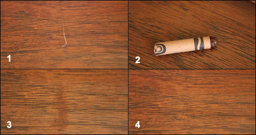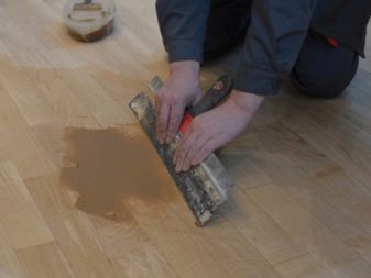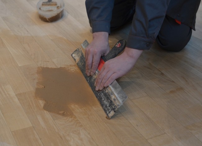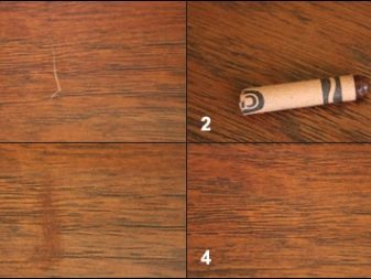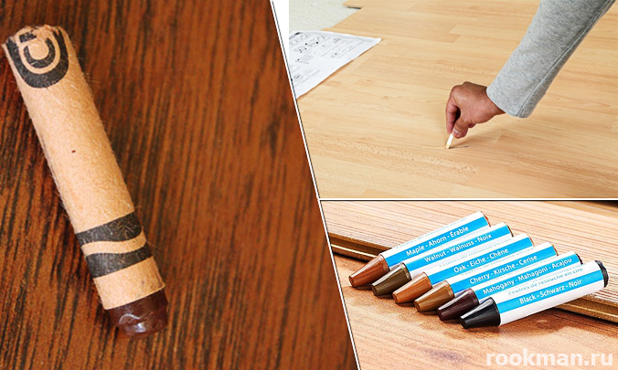 Mastix und Wachsabdichtungen helfen, Fehler zu beseitigen, die nicht mit einem einfachen Stift behandelt werden können. Wie im vorherigen Fall ist die Hauptbedingung die richtige Farbtonwahl, denn wenn Sie die Farbe nicht erraten - alle Bemühungen werden umsonst sein, denn Ein anderer Farbton wird vor dem Hintergrund der Gesamtzusammensetzung des Bodens stark auffallen:
