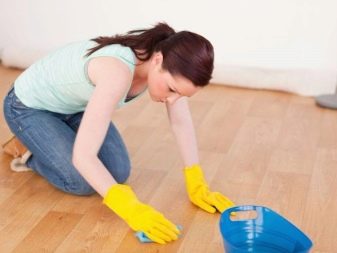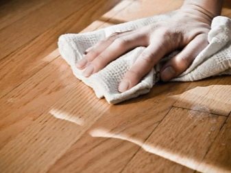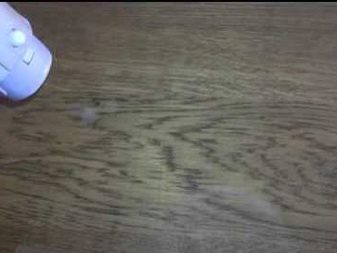 Es wird nicht empfohlen, das Laminat mit Wachs zu polieren, aufgrund der Tatsache, dass die Schutzschicht des Produkts bereits auf der Basis dieser Komponente hergestellt wurde. Wenn Sie die erwähnte Komponente auf die laminierten Elemente auftragen, können Sie die Flecken und Flecken sehen, während der Schutz des Produkts, das in der Fabrik angewendet wird, sich verschlechtern kann.Es ist zweckmäßiger, spezialisierte Lösungen zu verwenden, die Wachs in ihrer Zusammensetzung enthalten.