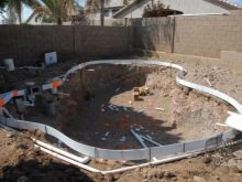 Berücksichtigen Sie zwei Optionen für die Montage einer Kunststoffschale: Verwenden Sie Holzschalungen und verstärken Sie die Seiten mit Zement.