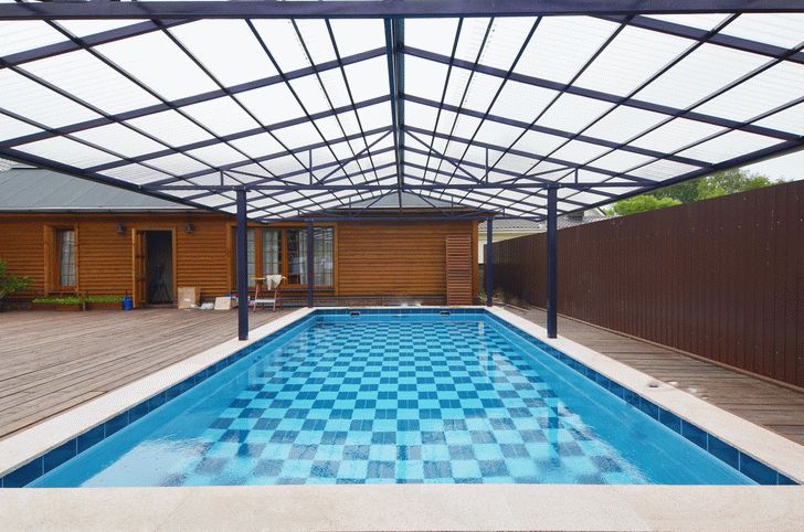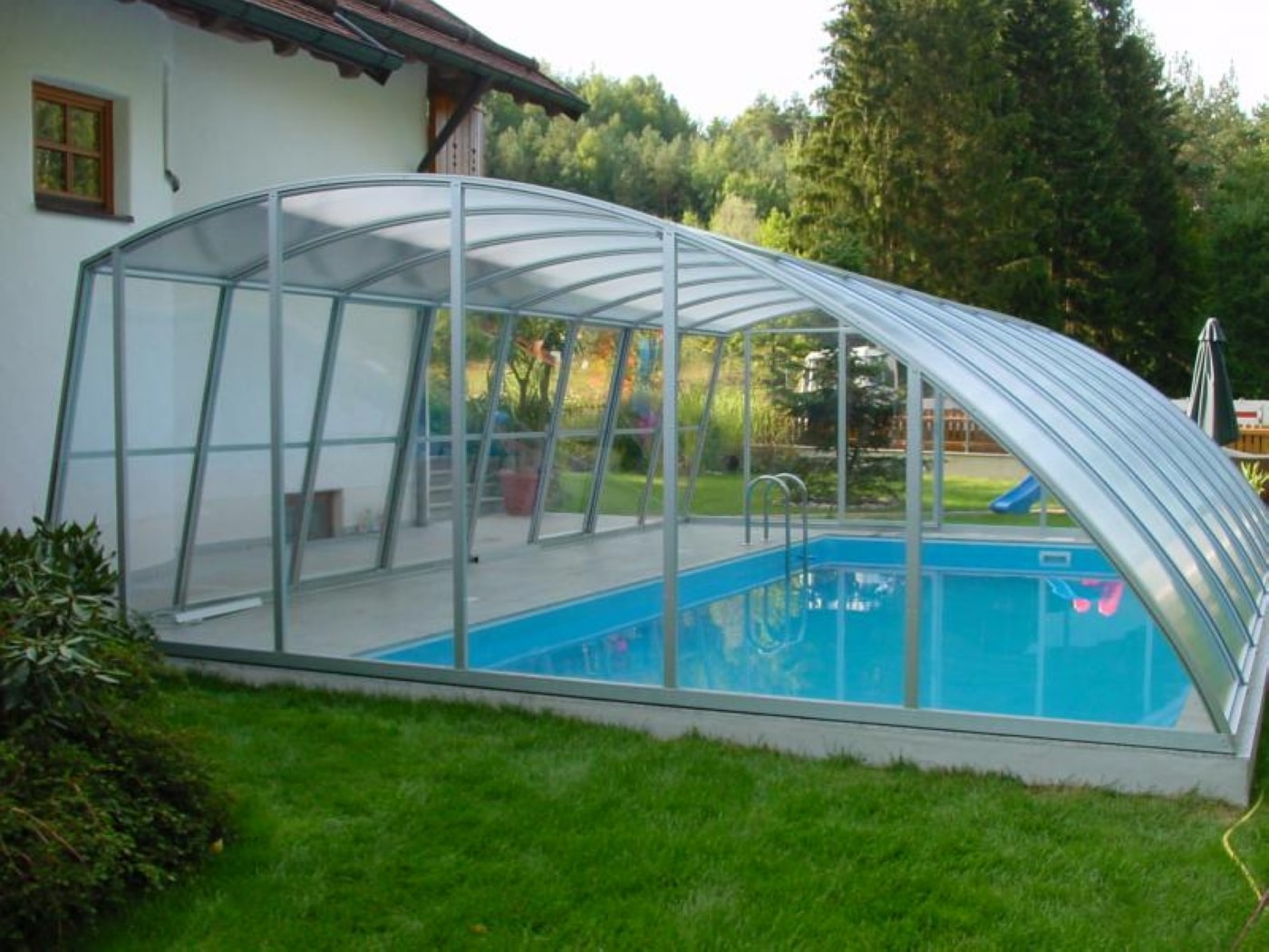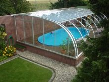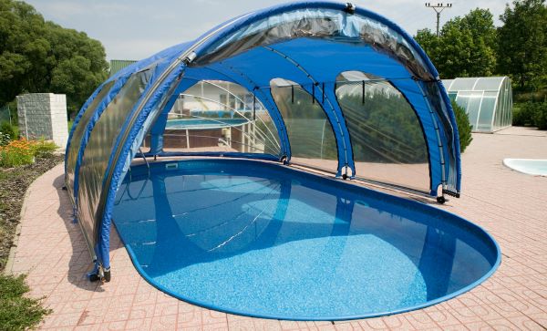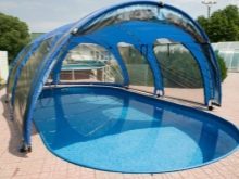 Zum Schutz des Datscha-Pools vor Blättern und anderen Gegenständen kann, wenn wir über kleine Teiche sprechen, ein Film abgedeckt werden, der sich über die Oberfläche ausbreiten kann, wenn der Pool nicht benutzt wird.