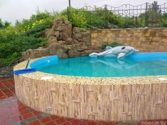 Abschluss des Pools - eine Frage des Geschmacks und manchmal finanzielle Möglichkeiten. Sie können PVC-Folie, Mosaikfliesen auf dem Gitter, nur Fliesen und spezielle Acrylfarbe mit zusätzlicher Farbe verwenden. Es sollte daran erinnert werden, dass beim Kleben eines Mosaiks Kleber verwendet werden muss, der Temperaturextreme aushält.