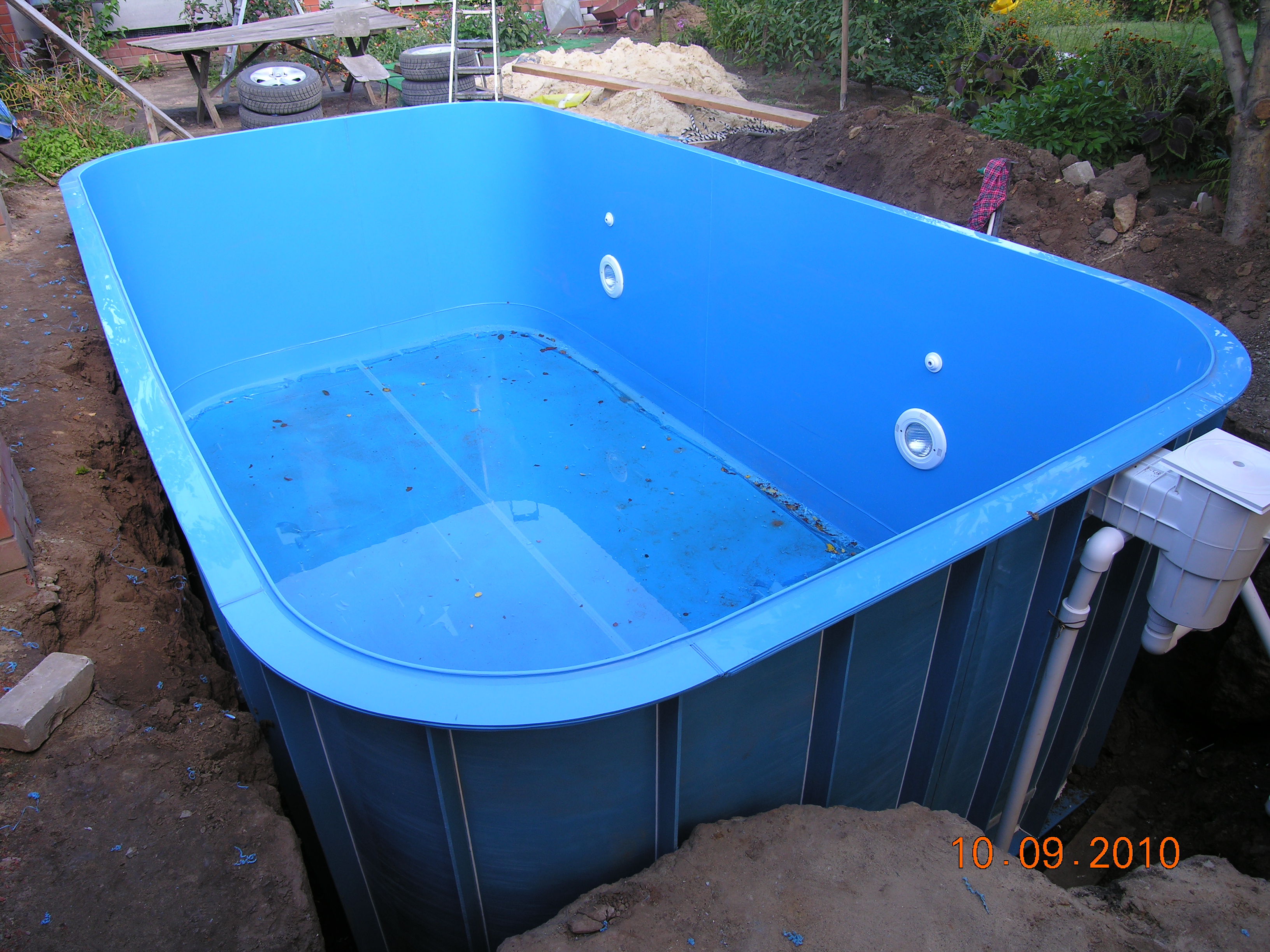 Kunststoff-Pool ist sehr einfach zu installieren.Sie müssen nur eine Fundamentgrube graben und die Struktur sicher installieren.