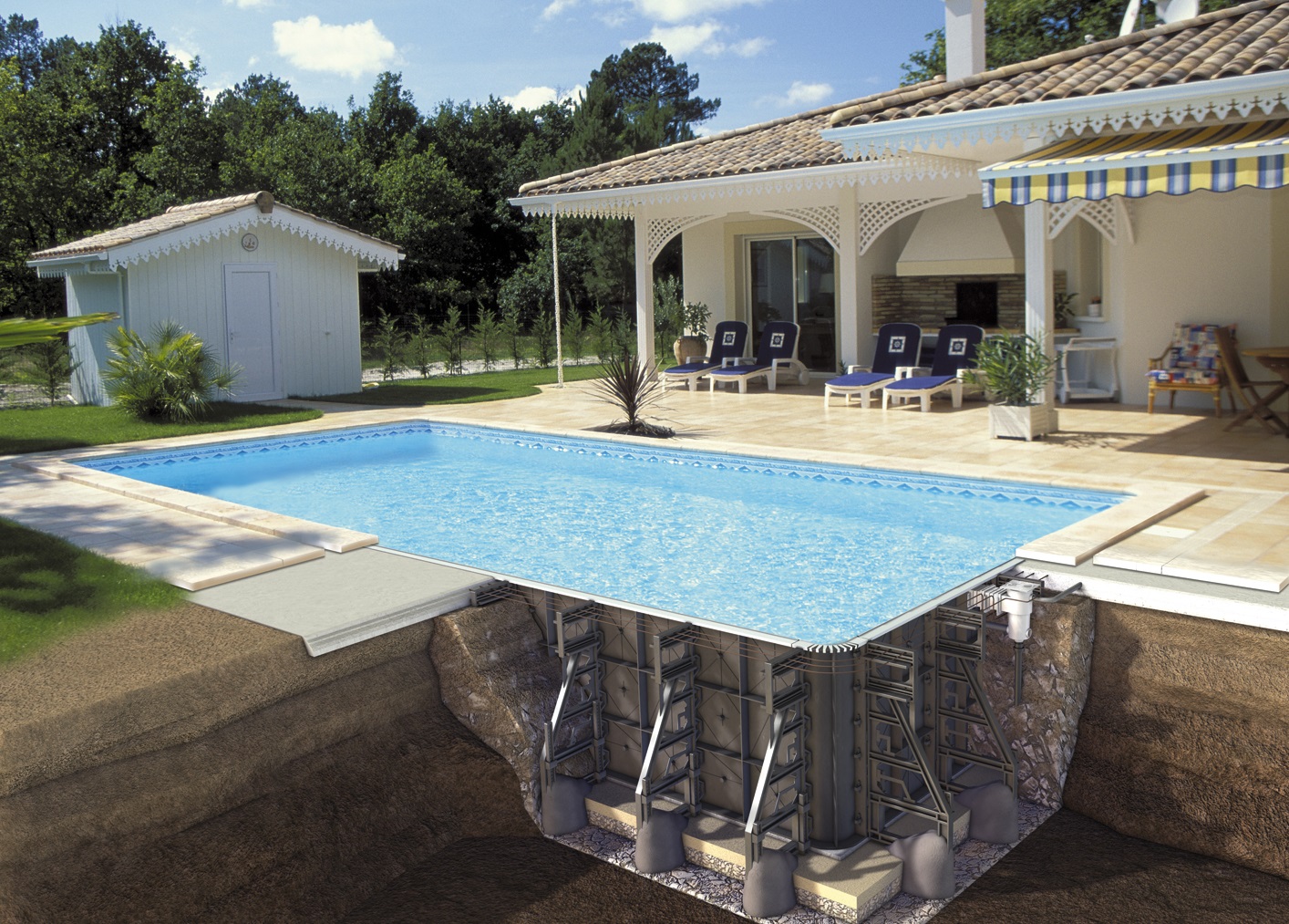 Wir bieten die schrittweise Produktion von mehreren Arten von Schwimmbecken an: ein Rahmenaußenbecken aus Holzpaletten, ein Reservoir aus Kunststoff (Polypropylen oder Fiberglas), Kapazität und eine monolithische Betonstruktur.