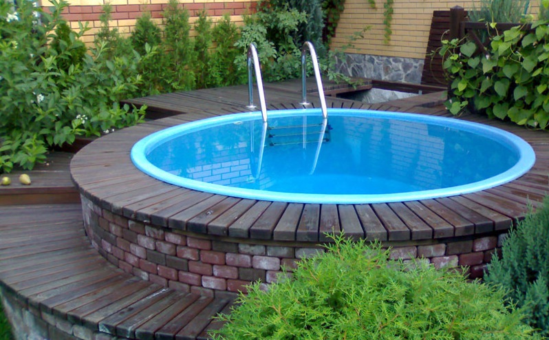 Es ist wichtig zu erwähnen, dass stationäre Pools nach der Art ihrer Installation auf teilweise versenkt und komplett versenkt werden können. Aus improvisierten Mitteln ist ein Pool nicht schwer zu machen. Es kann auch aus Bausteinen gebaut werden.. Wenn Sie natürlich die notwendigen Fähigkeiten in der Konstruktion haben.