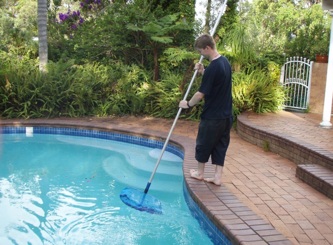 Mit Hilfe eines Netzes, jeden Tag oder einmal in einer günstigen Zeit für den Besitzer sollte der Pool von Schutt befreit werden. Wenn sich an den Wänden eine unangenehme Blüte bildet, verwenden Sie einen Pinsel.. Diese Maßnahmen werden jedoch nicht vor dem Einfluss kleiner Organismen schützen, also sollten Sie das Wasser auf andere Weise reinigen.