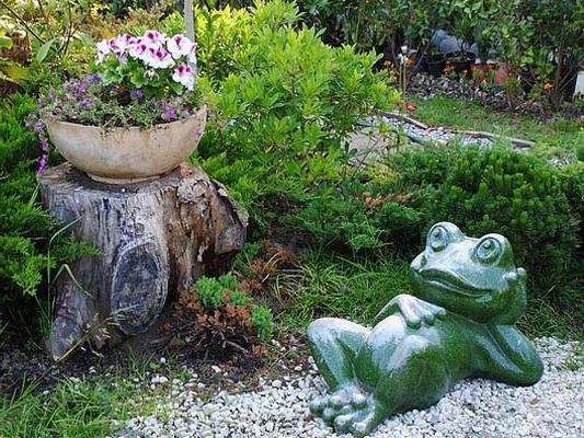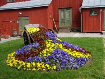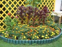 Dekor für ein Blumenbeet ist nicht beschränkt auf Beleuchtung, Brunnen, Statuetten, Zäune und Pendel. Es gibt viele interessante Ideen: