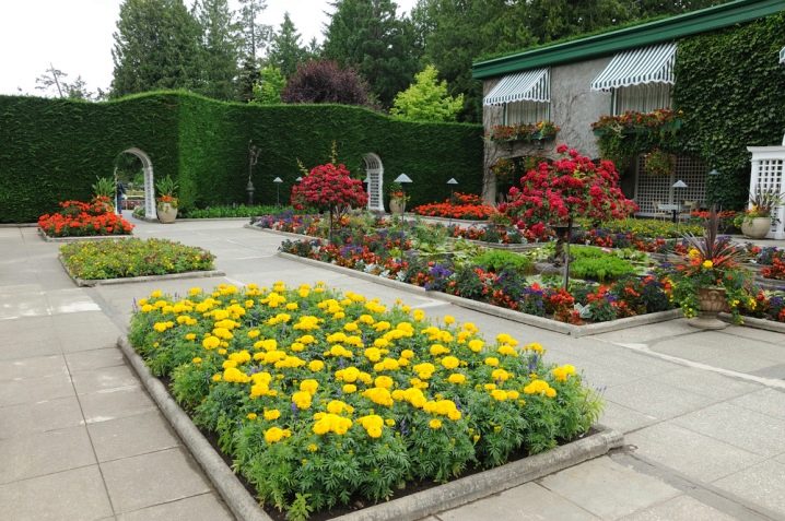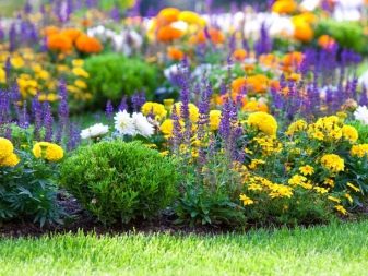 Der Bequemlichkeit halber können Sie die Blumengärten auf die Landschaft und regelmäßig teilen. Aus einer Kombination von 7 oder mehr verschiedenen Pflanzen entsteht ein klassischer Blumengarten. Blumenbeete des regelmäßigen Typs werden durch gerade Linien und klare Abbildungen gekennzeichnet. Sie werden oft mit dekorativen Elementen transformiert. Der Rasen wird normalerweise als Bestandteil eines Blumengartens und als Hintergrund für Pflanzen verwendet.
