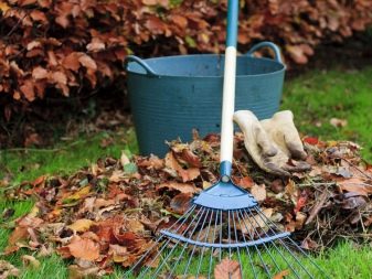 - Saubere Blumenbeete und Rasen mit einem Rechen. Dies ist der schnellste und richtige Weg, den Boden von verblichenem Gras und Laub zu reinigen.