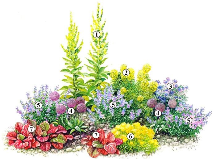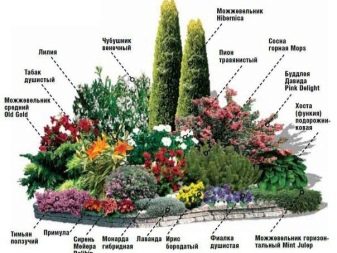 Es gibt einige wichtigere Bedingungen für die richtige Gestaltung des Blumengartens. Achten Sie darauf, wie viel die Pflanze wächst.. Es ist wichtig, die Höhe der Pflanzen und die Form ihrer Blätter zu berücksichtigen. Eine gute Unterstützung für das Blumenbeet werden Pflanzen mit dekorativen seinBlätter und kleine Pflegeanforderungen. Betrachten Sie die Pflanzenkombination genauer, damit sie sich nicht gegenseitig schädigen.