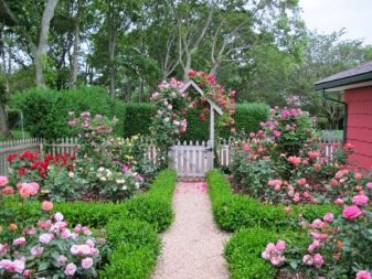- Rosengarten. Rosen sind oft die Dekoration des Vorgartens. Dieses Blumenbeet sollte an einem warmen Ort aufgestellt werden, er braucht die Sonnenstrahlen. In einigen Bereichen können Sie eine interessante Kombination Rosengarten machen. Als Zusätze pflanzten Getreide, Hvoyniki, Sträucher und verschiedene Arten von Wermut, so dass diese Version des Rosenkranzes den Garten das ganze Jahr über schmückte.