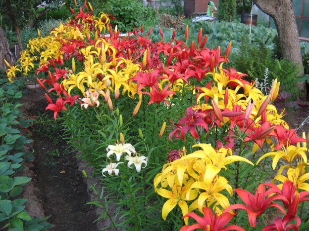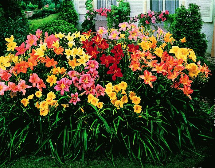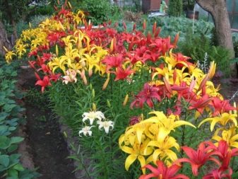 - Taglilie. Blumengarten mit Taglilien kann in Mono-Version durchgeführt werden. Die Vielfalt der Sorten ermöglicht eine harmonische Komposition.