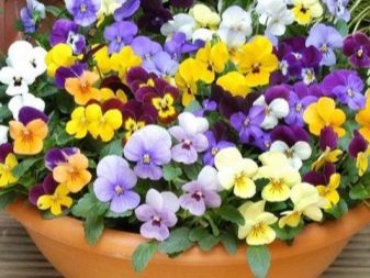 - Stiefmütterchen (Viola). Blumen werden häufiger als Jahrbücher angebaut. Die Pflanze liebt Wärme, kann aber an einem leicht schattigen Ort wachsen. Es blüht von April bis zum Frost. Vor einem kalten Winter ist es besser, sie auszugraben und in ein Gewächshaus zu pflanzen.