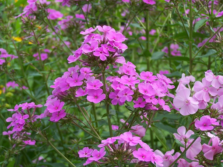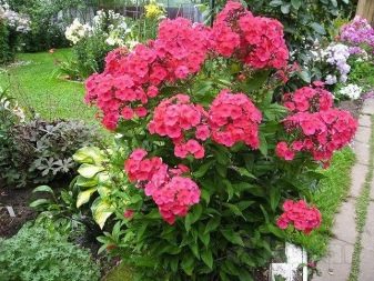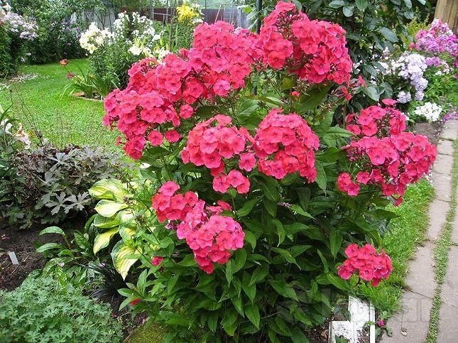 - Phlox. Die schönste Pflanze blüht in einer sonnigen Gegend, kann aber im Halbschatten wachsen. Die Pflanze muss bewässert und gefüttert werden. Es hat viele Sorten mit verschiedenen Farben.