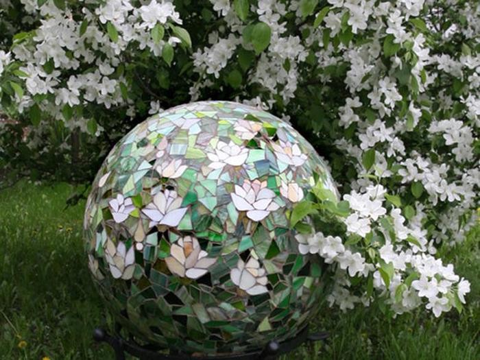 - Glänzende Spiegel- oder Mosaikkugeln können die Lücken zwischen den Pflanzen in Ihrem Blumenbeet verbergen.