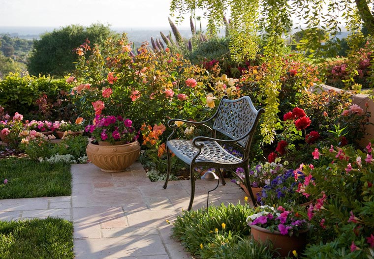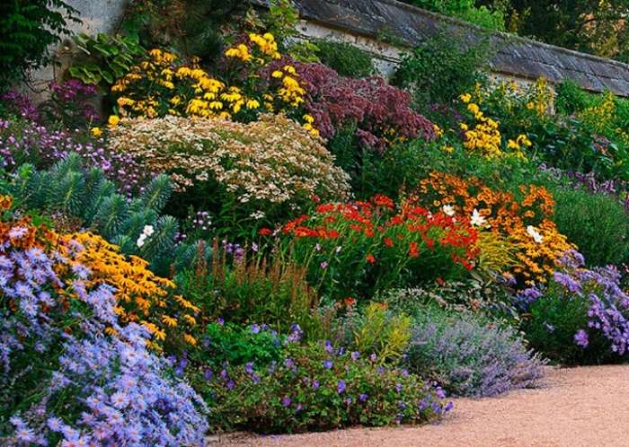 - Auswahl an Farbtönen. Dunkelrote und violette Töne verleihen dem Garten ein dynamisches Aussehen. Der Blumengarten in einem Ton sieht stilvoll aus. Gelbe und blaue Farben schaffen eine ruhige und positive Atmosphäre.Die Wahl der Farbe ist eine subjektive Frage, aber nehmen Sie sie verantwortungsvoll.