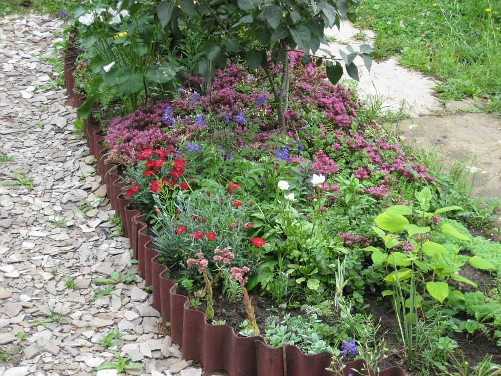 Die Breite des Blumenbeets reicht von 40 cm bis 1,5 m, und entlang der Länge des Kamms werden periodische Unterbrechungen gemacht, um die Pflege von Blumen zu vereinfachen.