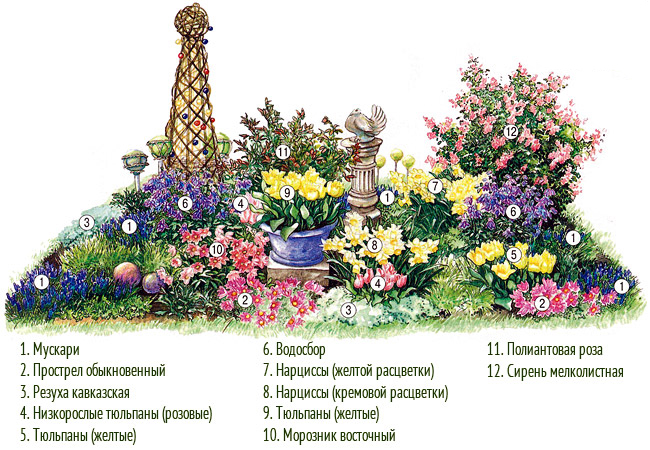 - Springarium. Der Vorteil in dieser Art ist, Pflanzen mit Frühlingsblüten zu pflanzen.