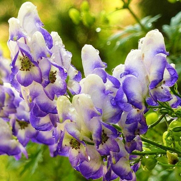 - Vor ihnen landet ein Aconitum mit Blumen in verschiedenen Tönen. Es sieht gut aus, Kombination der beiden Arten.