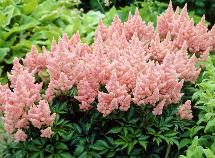 - Astilba. Je nach Sorte kann die Größe und Farbe der Blüten variieren. Die Blütezeit - bis zu 10 Wochen, wächst auch im Schatten.