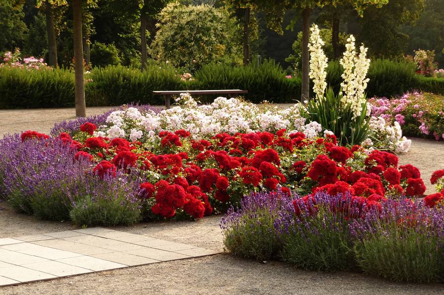 Es ist wichtig, dass die Hauptblumen des Rosengartens im Rampenlicht stehen.