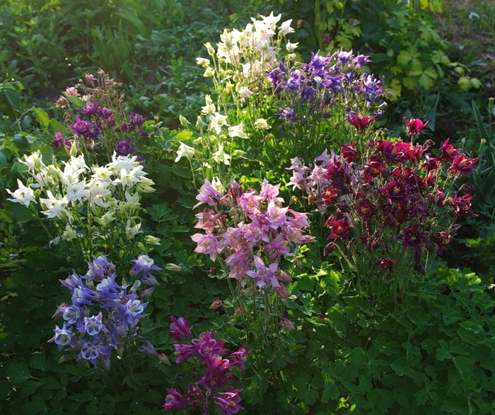 - Aquilegia. Für die richtige Entwicklung einer Pflanze genügt es, sie regelmäßig zu gießen. Sie wird bis zu 1 m hoch und hat schöne durchbrochene Blätter. Das Einzugsgebiet blüht fast den ganzen Sommer.