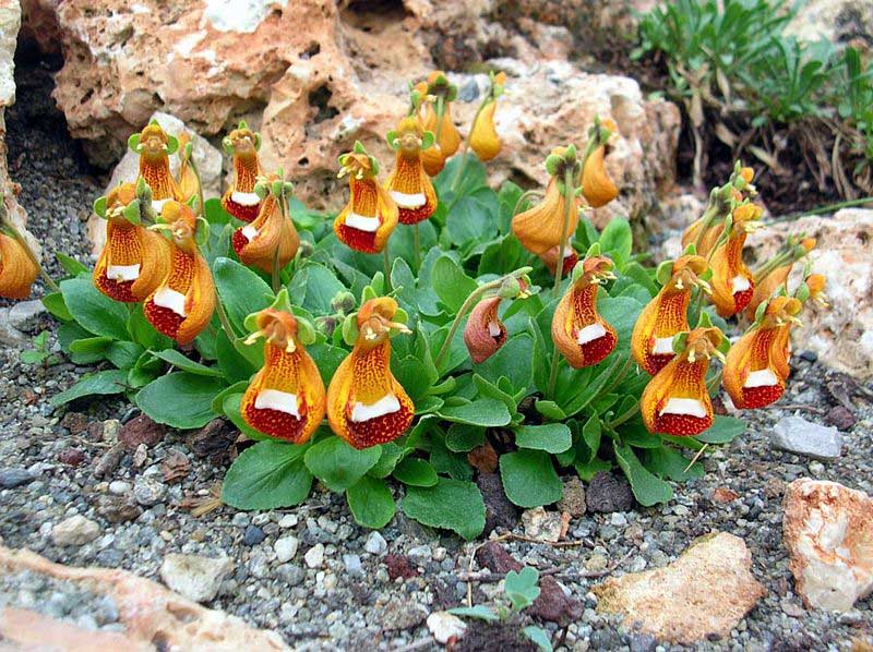 - Calceolaria. Helle ungewöhnliche Blumen eines Jahres machen Ihren Blumengarten exotischer. Die Pflanze verträgt überhaupt keine Hitze, pflanzt sie im Schatten. Bei der Bewässerung ist es wichtig, die Bodenfeuchtigkeit zu erhalten, aber nicht die Blätter am Rand zu benetzen, da das Eindringen von Wasser dazu führen kann, dass die Blätter vollständig absterben. Sie blüht vom Frühsommer bis Mitte Herbst.