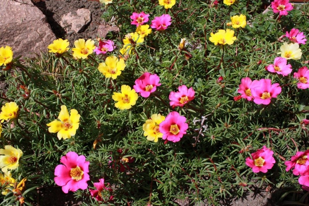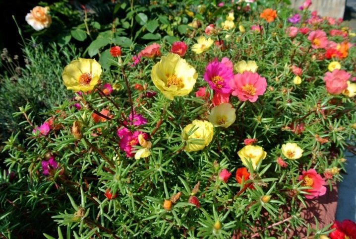 Unter den niedrig wachsenden Pflanzen ist beliebt Portulak. Viele Menschen kennen den Namen dieser Pflanze, aber nur wenige wissen, dass es essbar ist. Ein großer Vorteil der Blume ist, dass sie keine Angst vor der sengenden Sonne hat. Portulak verschleiert buchstäblich den Boden und macht den Blumengarten eins.