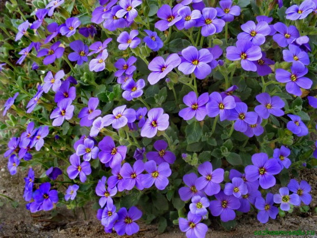 - Yaskolka fühlte. Blütezeit ist von Mai bis Juni.Die Pflanze bedeckt den Boden mit einem dekorativen Teppich mit einer Höhe von 20-30 cm.