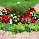 - Rosen. Gilt als wahrer Klassiker des Landschaftsdesigns. Ihre üppige Blüte und der elegante Duft schaffen auf dem Gelände eine günstige Atmosphäre für Entspannung und Träume. Die Blumen sind Miniatur, so dass die ganze Komposition sehr elegant und aristokratisch aussieht.