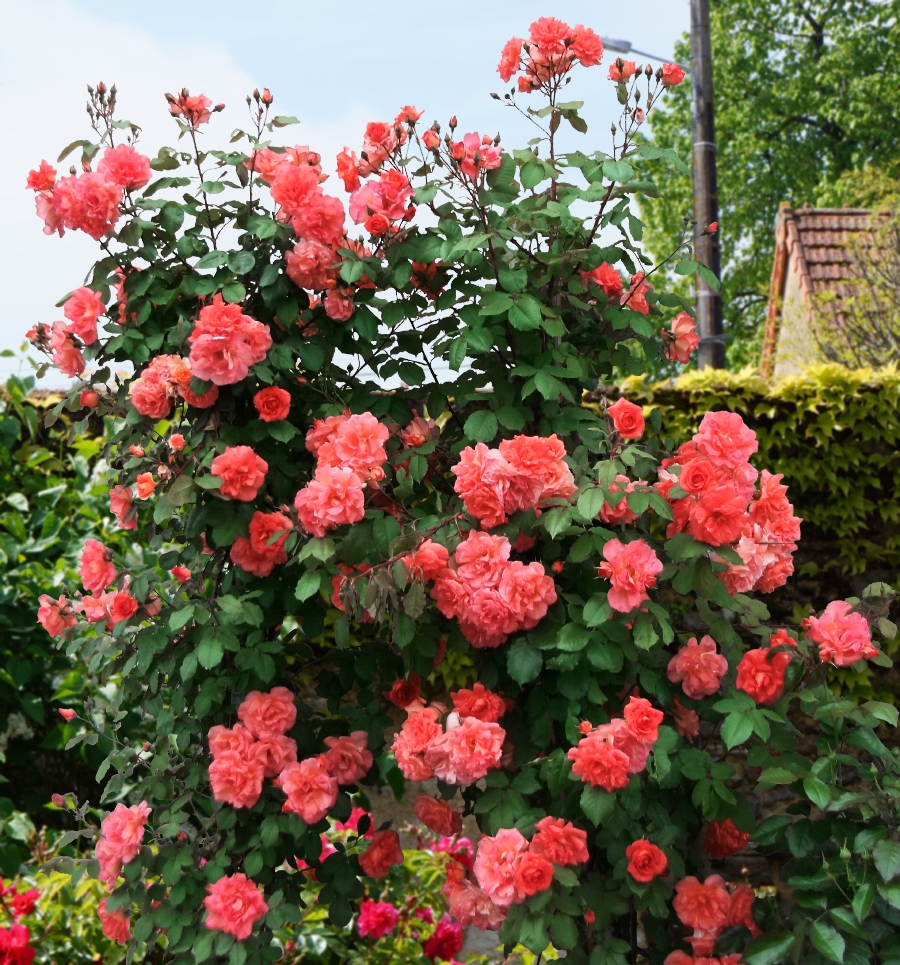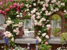 - Kletterrose. Braucht reichlich Wasser und Sonnenlicht. Diese Pflanze verleiht dem Standort einen gewissen Luxus und ästhetische Schönheit. Seine üppige Blüte und sein feines Aroma schaffen eine angenehme Atmosphäre und tragen zu einem guten Zeitvertreib bei.