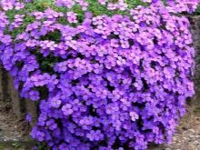- Aubrieta. Ideal für die Vordergrundblumenbeete, weil diese Art von Blumen einen wirklichen blühenden Teppich auf der Bodenoberfläche verursacht. Die Farbskala und die Form dieser Pflanzen unterscheiden sich je nach Pflanzensorte.