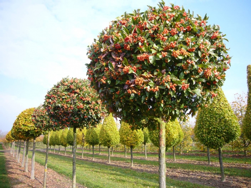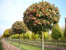 - Standardbäume. Sie haben das Aussehen eines Stammes, der sauber von überschüssigen Ästen gereinigt wird, so dass die Krone wie Kugeln aussieht. Die besten Optionen sind Rhododendron, Geißblatt, deren, Flieder und Forsythien.