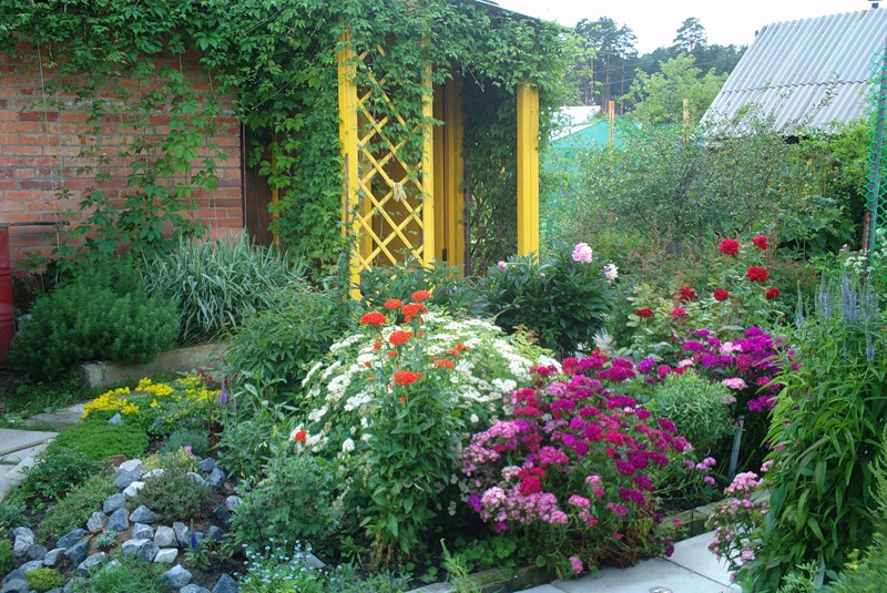 Blumen sind ein wichtiges Attribut fast jeder Handlung. Sie ergänzen perfekt die Textur und schaffen auch die ursprüngliche Form der Landschaft, die ihr einen besonderen Ton verleiht. Es sind Blumenkompositionen, die als verbindendes Element im Verhältnis zu anderen Pflanzen im Garten dienen, sowie ein unverzichtbarer Bestandteil der Landschaftsgestaltung eines jeden Datscha-Objekts.