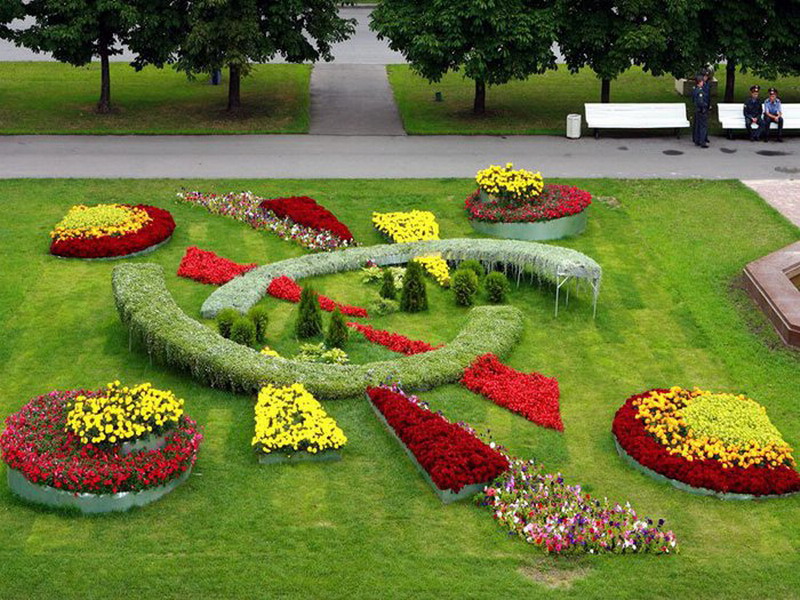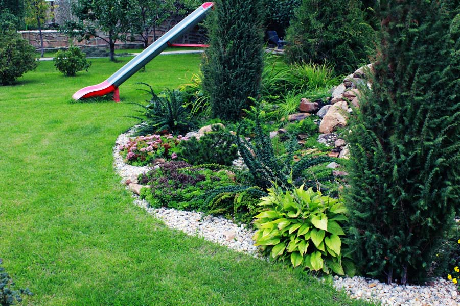 Bei der Schaffung von Blumenbeeten können nicht nur Blumen, sondern auch Sträucher oder Bäume verwendet werden.