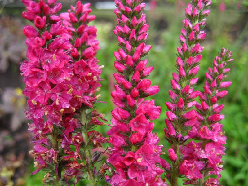 - Veronica. Seine Stängel sind etwa 40 cm hoch, mit leuchtend blauen, weißen, rosa oder blauen Blüten, die wie ein Ährchen aussehen. Die Blütezeit beginnt im Juni und dauert 40 Tage.