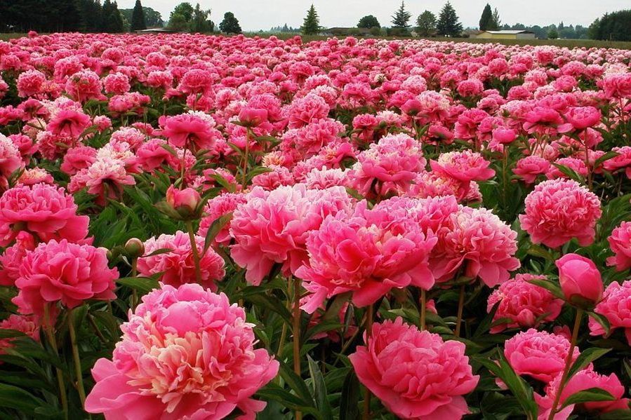 - Pfingstrosen. Üppige und schöne Blumen, die eine echte Dekoration für jedes Blumenbeet werden können.