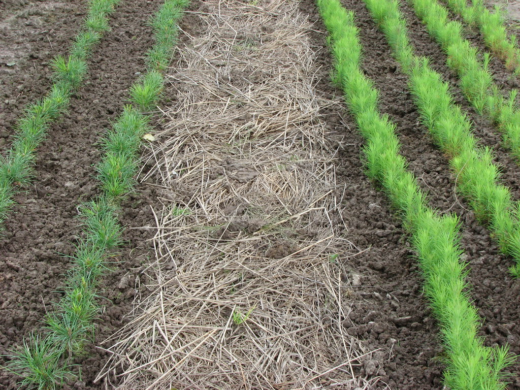 - Mulchen. Verteilung um Pflanzen aus organischem Material in Form einer lockeren Schicht.
