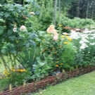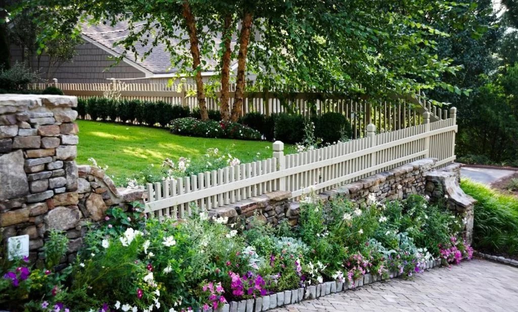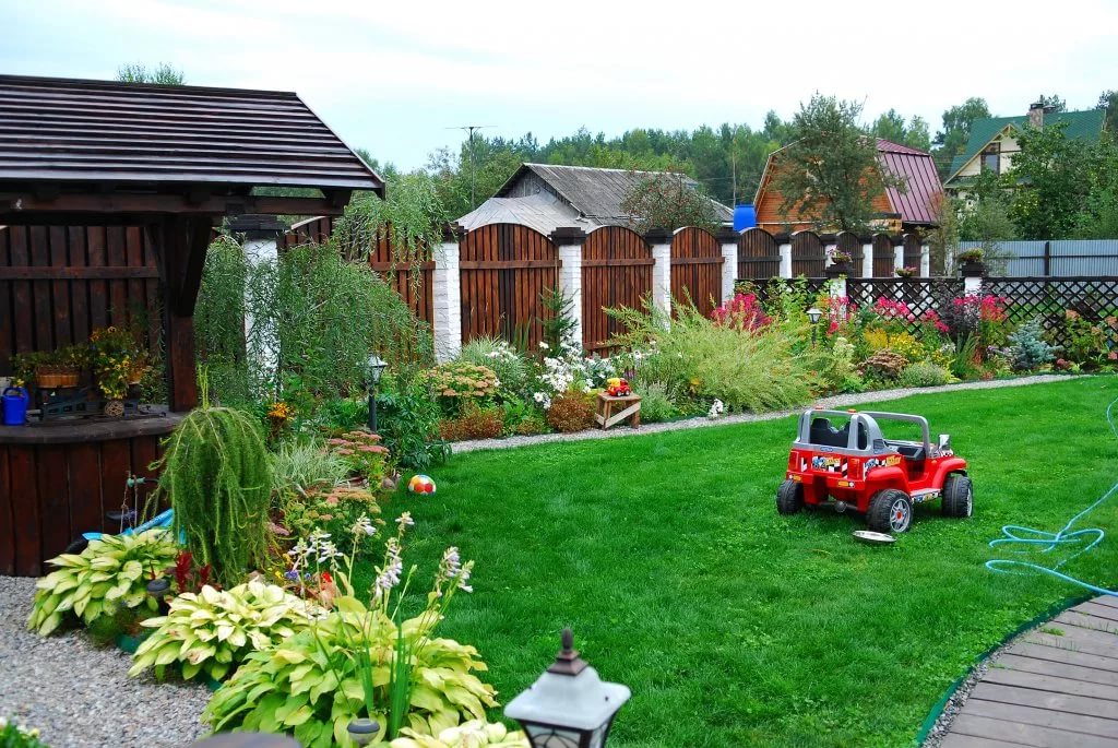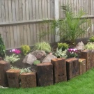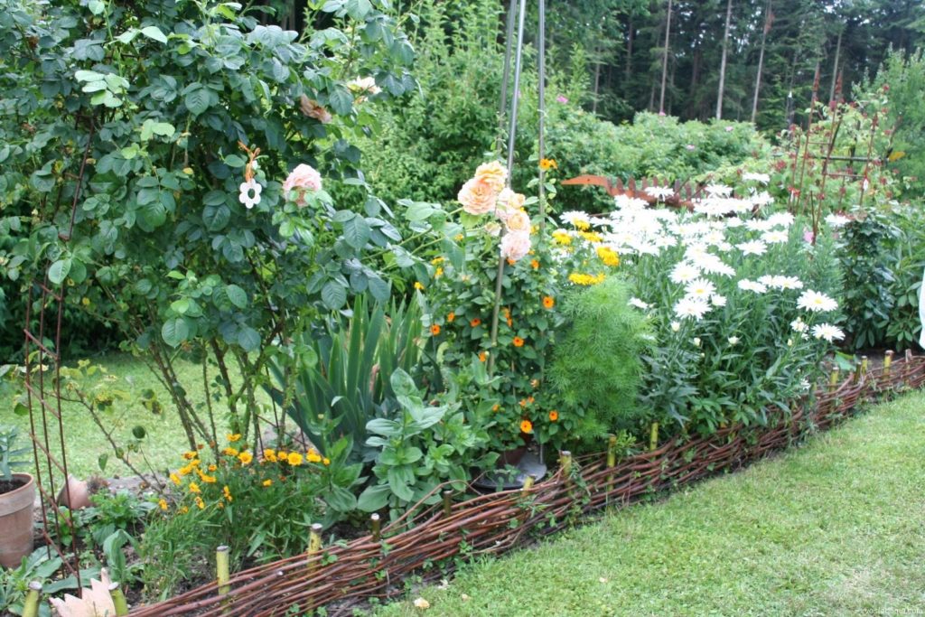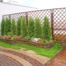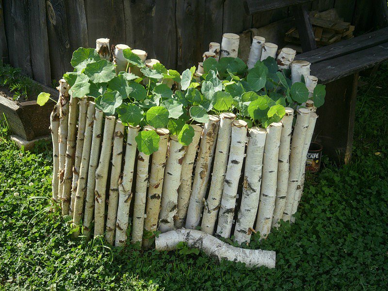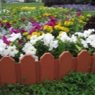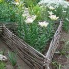 Wenn Sie nicht nur die Linien auf der Website zeigen, sondern auch ihre Attraktivität erhöhen möchten, folgen Sie ihnen im gleichen Stil mit den Blumenbeeten, Blumengärten und Rasenflächen. Was das Material anbelangt, sind die Stämme und Bretter gut für eine minimale Erwärmung in der Sonne, die Pflanzen werden keine Verbrennungen bekommen, wenn sie mit ihnen in Kontakt kommen. Ein weiterer wichtiger Vorteil von Holz ist die einfache Bedienung, der Mangel an speziellen Fähigkeiten und ausgeklügelten Werkzeugen.Die ungenügende Standzeit von Holz kann durch spezielle Imprägnierungen und Abtupfen des Zaunes von Zeit zu Zeit stark erhöht werden.