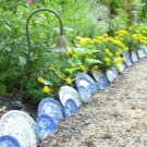 Wenn kein Zement zur Hand ist, sind Plastikflaschen eine gute Lösung. Mit ihrer Hilfe können Sie, wenn Sie einen anderen Gips verwenden, Schwäne oder andere Arten von gemustertem Gartendekor bilden. Und Sie können einfach in den Boden geschnittene Flaschen graben und sie als Rahmen für Pflanzen verwenden. Wenn Sie die Farbe aufgetragen haben, werden Sie aus dem Klischee Plastik als etwas billiges und nicht zu praktisches Material leicht gehen.