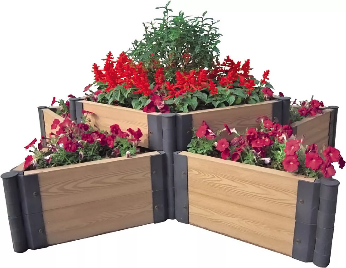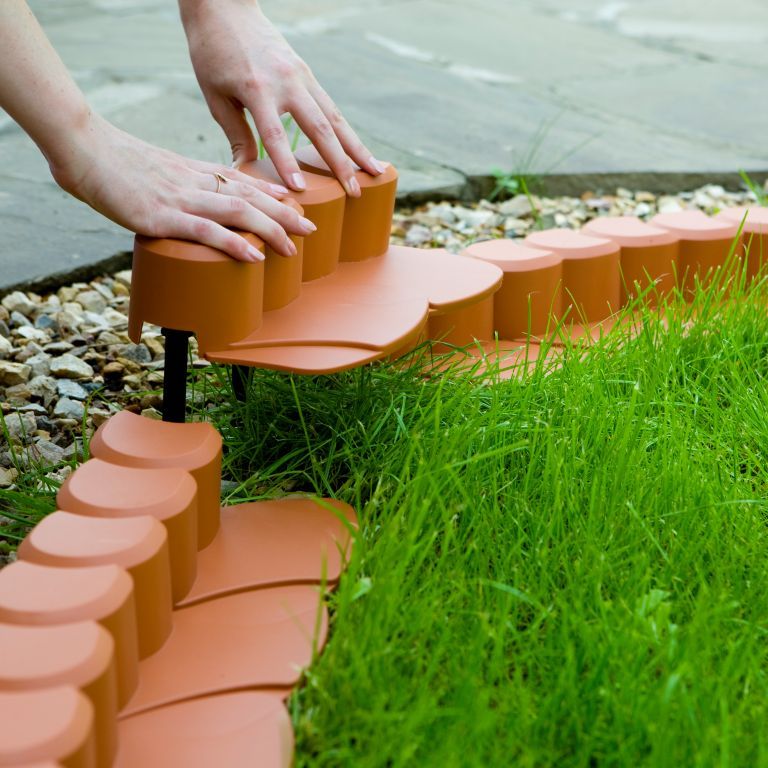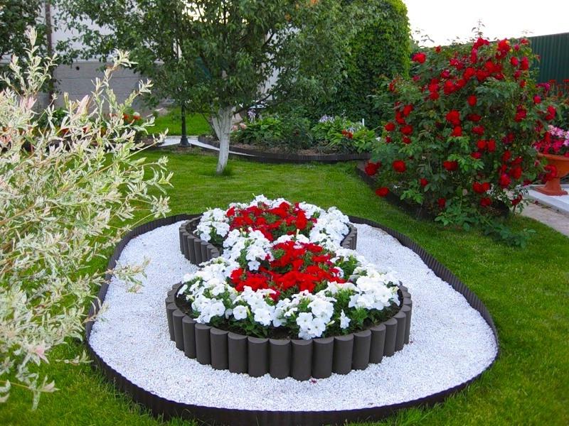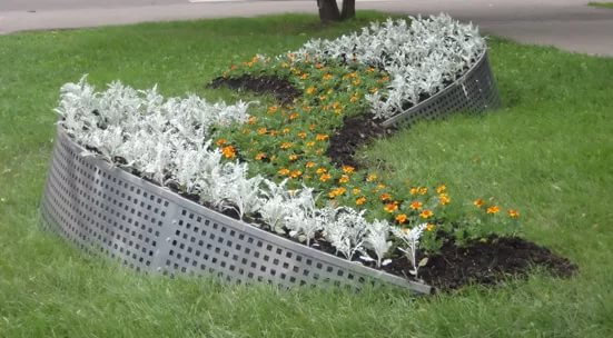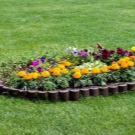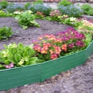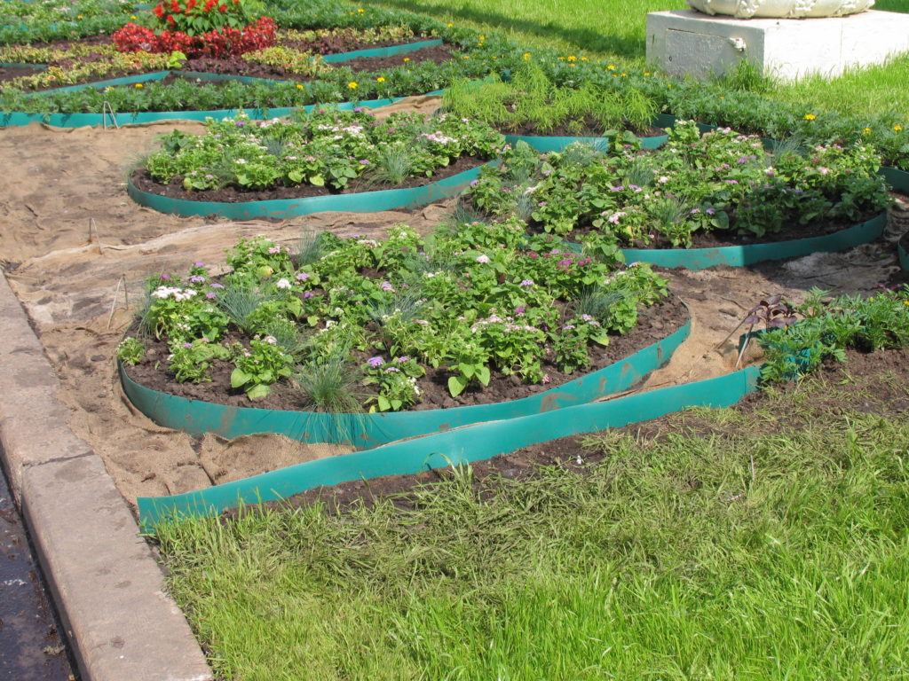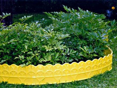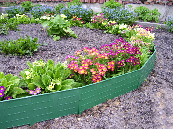 Kunststoff hat auch seine Vorteile: Er hat keinen Kontakt mit Wasser, nimmt keine Feuchtigkeit auf und hält lange.Es gibt Plastikränder, die von weitem nur schwer von Stein, Holz oder Ziegel zu unterscheiden sind. Wichtig ist, dass Sie mit Kunststoff schnell eine abgestufte Struktur mit unterschiedlicher Höhe erstellen können. Pfähle werden einfach in den Boden gedrückt, und jetzt ist die Sectionalbarriere um das Blumenbeet vollständig fertig.