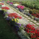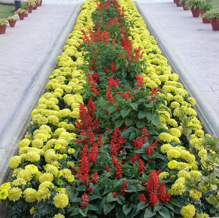 Pflücken Sie Blumen für Rabatok, achten Sie auf eine geometrisch strenge Form, die Klarheit der Farben und Formen. Der einfachste Weg, zwei oder drei längliche Streifen zu machen; Wenn Sie experimentieren möchten, wechseln Sie helle, ausdrucksstarke Spots in einem Schachbrettmuster ab. Ein Rahmen mit breiter Breite kann mit Abschnitten verschiedener geometrischer Formen bepflanzt werden, wodurch ein einzigartiges Aussehen entsteht. Erstellen Sie niemals so breite "Betten" mit einer Fülle von Farbstoffen, es ist korrekter, kleinere Wege zu verwenden und Blumenbeete an den Rändern anzuordnen.Beachten Sie, dass der Lichtmodus für alle Kulturen, die Teil von Rabatki sind, optimal sein sollte.
